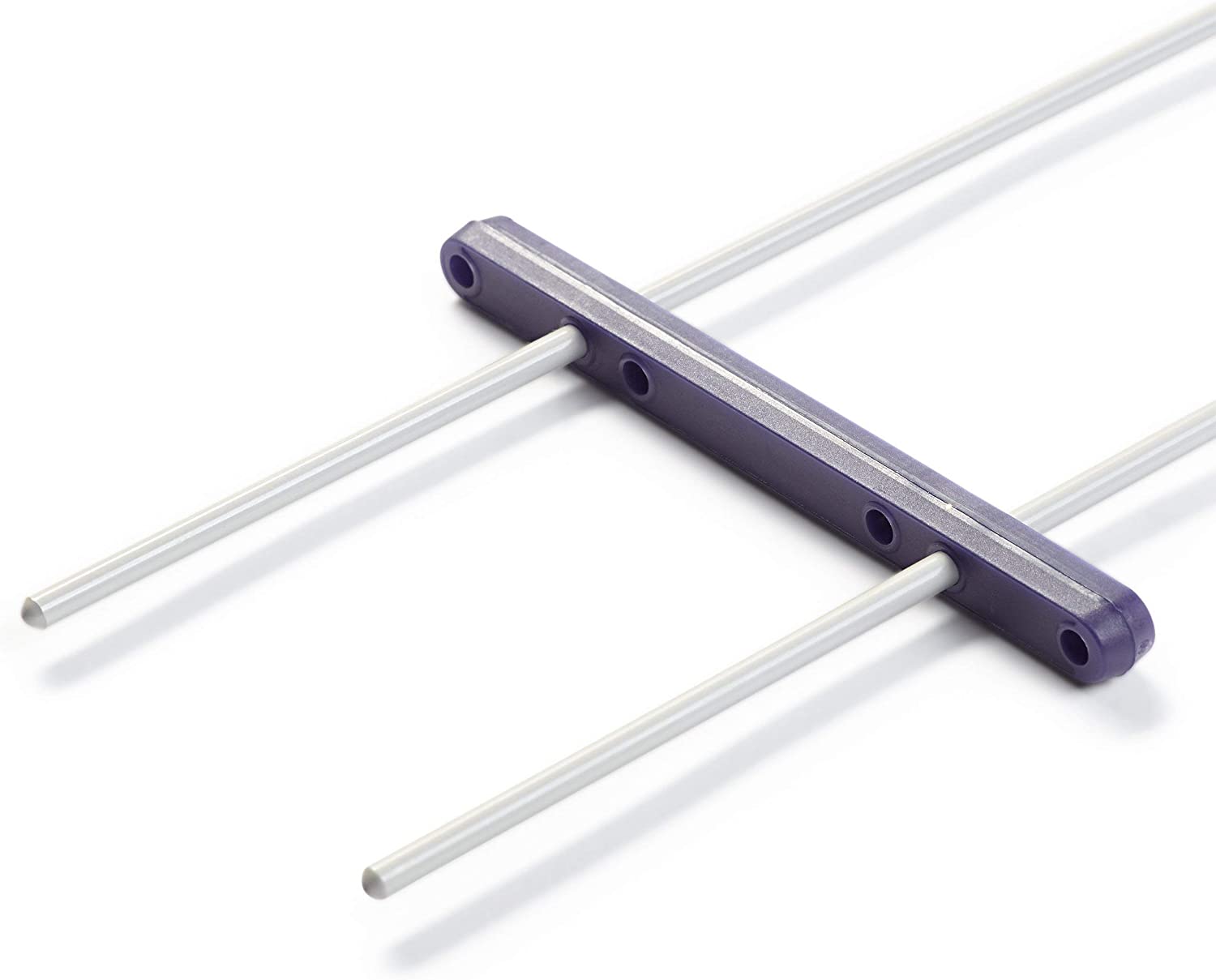 Ogni confezione è composta da due aste e un separatore che ha la funzione di mantenere equidistanti le forcelle e scegliere la misura desiderata. Puoi scegliere, infatti, 8 misure diverse (20 – 30 – 40 – 50 – 60 – 70 – 80 – 100 mm). La tecnica, affascinante e antica, permette di creare bellissimi lavori semplicemente avvolgendo il filo intorno alla forcella e lavorandolo all’uncinetto, con semplici punti base. Con ciò si ottengono delle strisce di larghezza variabile che possono essere usate singolarmente o unite tra di loro.